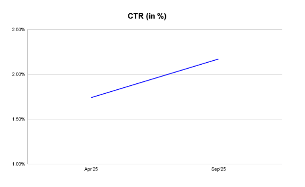 - 25% increase in CTR, indicating stronger ad relevance and visibility. Better engagement driven by optimized Style ID coverage & visibility of styles with strong inventory & performance helped in achieving the same.